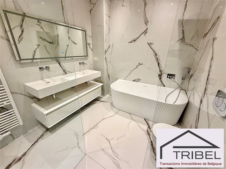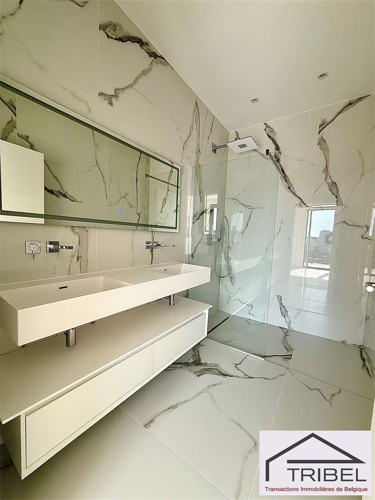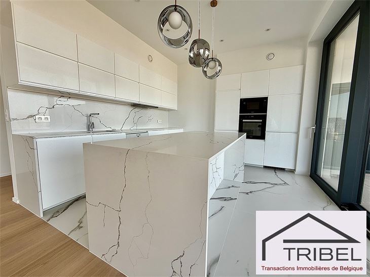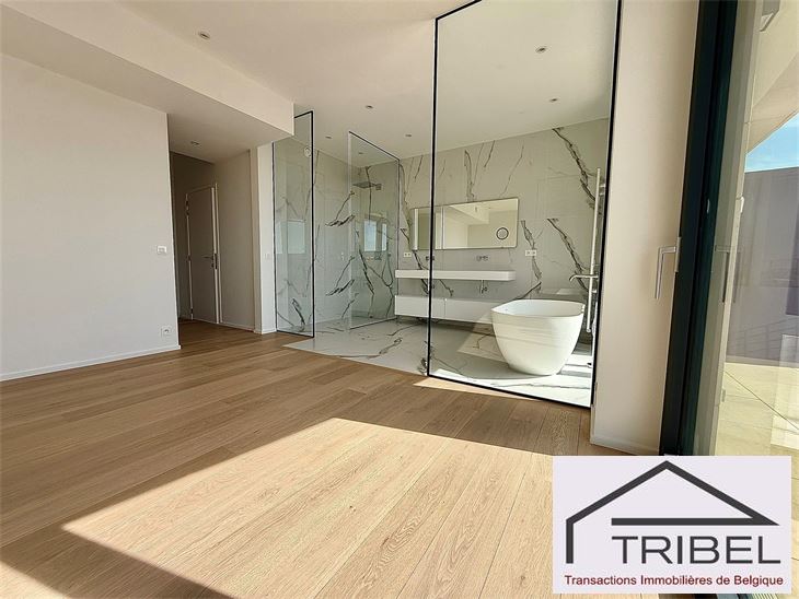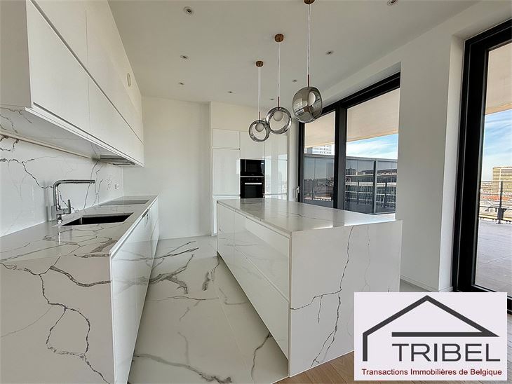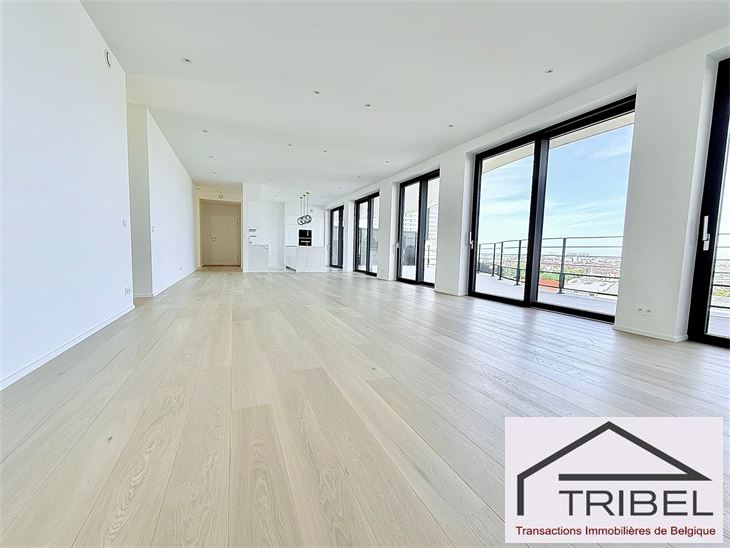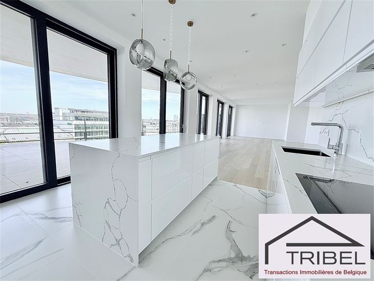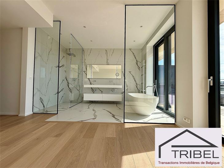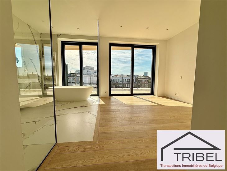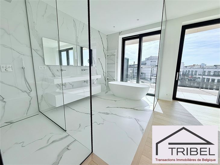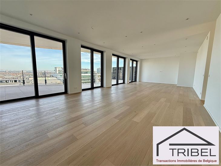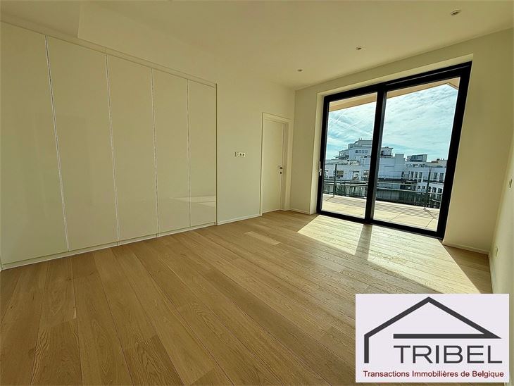IXELLES, à proximité du parc d'Egmont et à deux enjambées de la place du Sablon, à proximité immédiate des commerces, des restaurants et des transports en communs, dans un immeuble de standing contemporain (Résidence Cond'Or), superbe appartement NEUF de 214m², comprenant: hall d'entrée, vestiaire, wc visiteur, living spacieux, cuisine ouverte full équipée (électroménagers MIELE), buanderie + local technique, vastes terrasses avant et arrière, 3 grandes chambres avec placards de rangements (La chambre principale possède son propre dressing), 2 sdb, 2 sdd. Triple vitrage, porte blindée, cave. Possibilité de louer quatre emplacements de voiture dans l'immeuble pour 175€/mois/parking. Libre immédiatement. Pour conditions et visites: 02 344 88 84 / rent@tribel-immo.be / www.tribel-immo.be PEB: B, 14kg de CO2/(m².an).