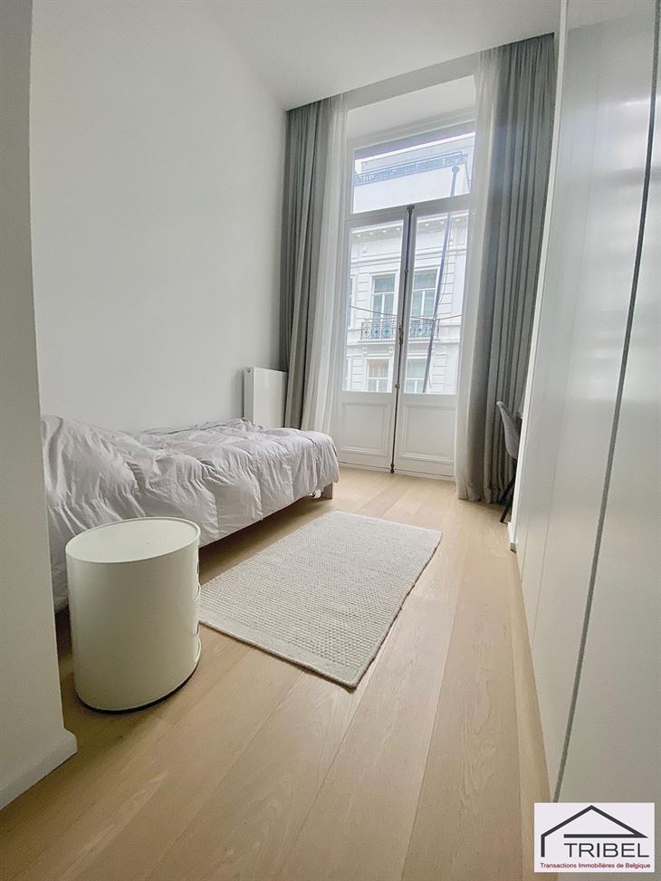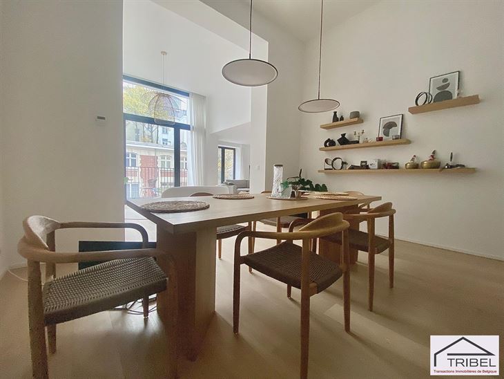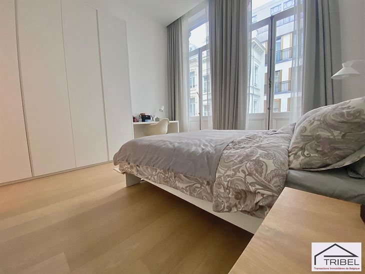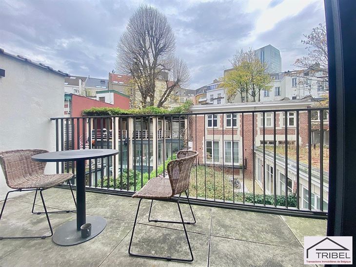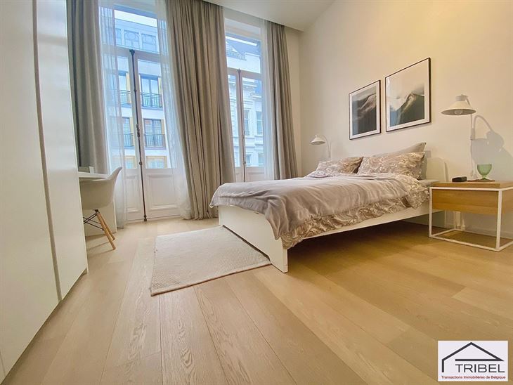 BRUXELLES, entre Botanique et la Place Royale, dans un magnifique immeuble, superbe appartement meublé de +/- 128m² + terrasse, comprenant: living, cuisine ouverte full équipée, deux chambres, salle de bains, salle de douche, wc séparé, espace buanderie, cave et local vélos. Parquet et double vitrage partout. Possibilité de louer un emplacement de parking dans l'immeuble en supplément. Bail société possible. Libre le 1er février 2026. BAIL DE 2 ANS MINIMUM! Pour conditions et visites: 02 344 88 84 / rent@tribel-immo.be / www.tribel-immo.be (PEB: C-)