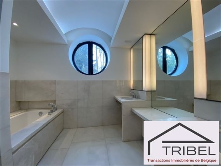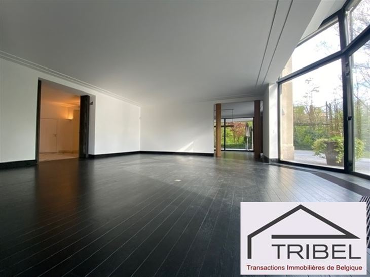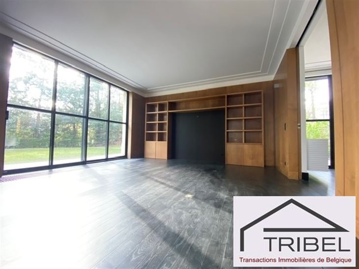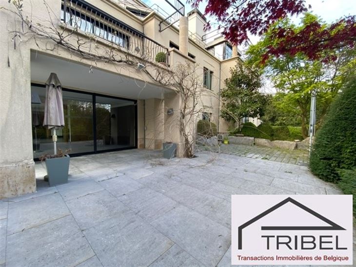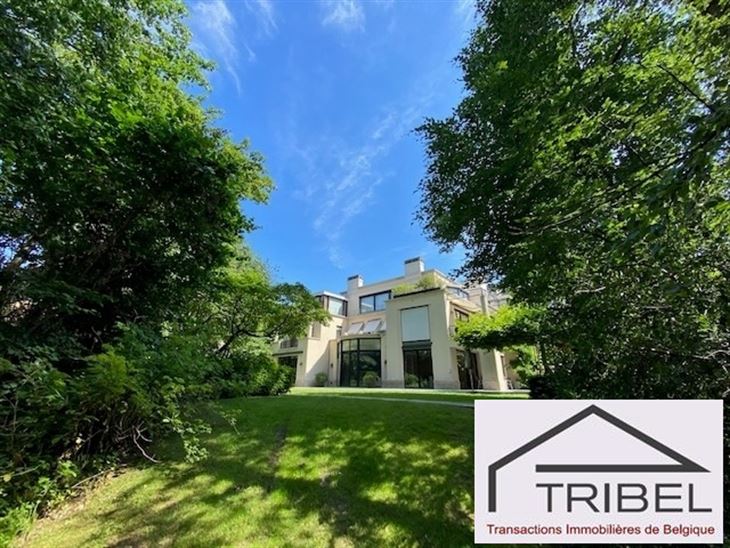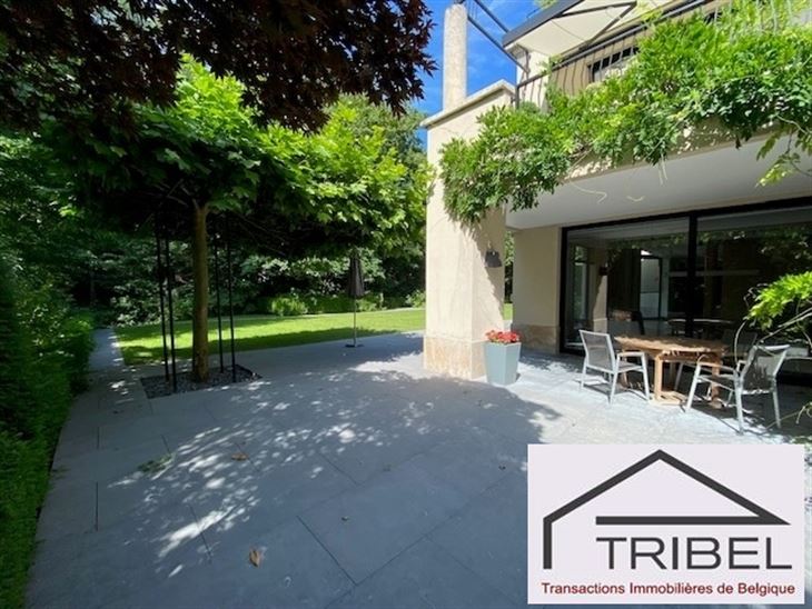 UCCLE (sur la très prestigieuse avenue du Prince d'Orange), en fond de terrain dans une villa à appartements construite par l'architecte MARC CORBIAU, exceptionnel rez-de-jardin de +/- 320m², comprenant: grand hall d'entrée, vestiaire, wc invités, vaste séjour (avec FO) et salle à manger donnant accès vers de sublimes terrasses ainsi que le jardin orienté SO, cuisine entièrement équipée, chambre des maîtres avec dressing et SDB, bibliothèque, 2 chambres, sdb + wc, sdd, chambre pour du personnel avec sa propre sdd + wc. Cave et sa buanderie + 2 emplacements de voiture en sous-sol. Libre à l'acte. Pour conditions et visites: 02 344 88 84 / sales@tribel-immo.be / www.tribel-immo.be