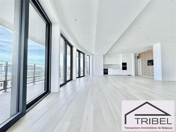 IXELLES, à proximité du parc d'Egmont et à deux enjambées de la place du Sablon, à proximité immédiate des commerces, des restaurants et des transports en communs, dans un immeuble de standing contemporain (Résidence Cond'Or), sublime appartement NEUF et luxueux de 243m² selon PEB, comprenant: hall d'entrée, vestiaire, wc invités, grand living, cuisine ouverte full équipée (électroménagers MIELE), buanderie + local technique, terrasse avant et arrière, 3 chambres avec placards de rangements, 1 sdb avec wc, 2 sdd dont une avec un wc. Triple vitrage, porte blindée, cave. Possibilité d'acquérir trois emplacements de voiture dans l'immeuble pour 40.000€/parking. Libre à l'acte. VENTE SOUS REGIME TVA 21%. Pour conditions et visites: 02 344 88 84 / sales@tribel-immo.be / www.tribel-immo.be PEB: B, 14kg de CO2/(m².an).