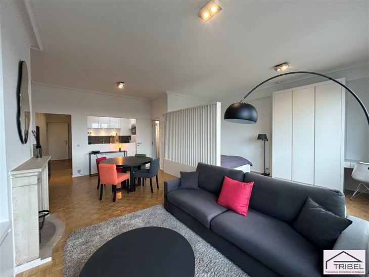 Bruxelles - Ixelles (CHÂTELAIN), dans un immeuble de standing, sublime studio (vendu avec tout le mobilier) de 66m² selon PEB (jolies vues extérieures), comprenant: hall d'entrée, living en parquet, cuisine ouverte full équipée, coin à dormir, salle de douche avec buanderie équipée, wc séparé, ascenseur, parking dans l'immeuble en supplément pour 40.000€ (obligatoire). Obligation locative à respecter (Bail en cours). Pour conditions et visites: 02 344 88 84 / rent@tribel-immo.be / www.tribel-immo.be PEB: F, 276kg de CO2/(m².an).
