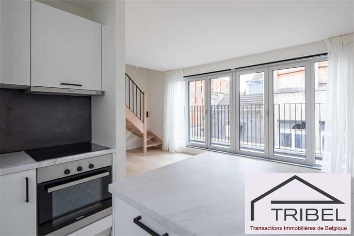 BRUXELLES, aux abords du quartier Dansaert et à deux pas de la Bourse, dans un immeuble neuf (2023), superbe duplex meublé de ±105m², comprenant: hall d'entrée, vestiaire, wc séparé, lumineux living, terrasse, cuisine ouverte full équipée, 3 chambres, 1 salle de bain, 1 salle de douche, wc séparé, espace buanderie. Parquet et double vitrage partout. 1 cave individuelle, local poubelle, local poussette et local vélo. Libre au 1er novembre 2025. Bail société possible (2 ans minimum). Charges 130€/mois (communs, entretien chaudière, assurance). Pour conditions et visites: 02 344 88 84 / rent@tribel-immo.be / www.tribel-immo.be (PEB: B)