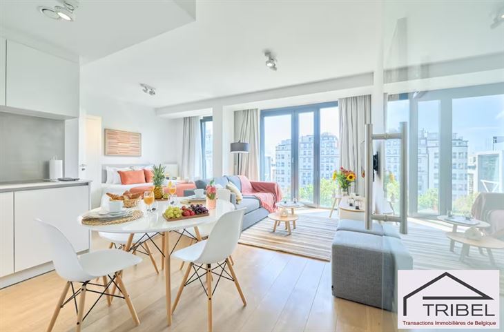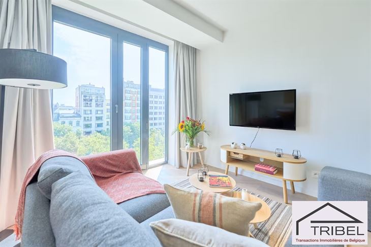 BRUXELLES, à proximité immédiate de la Place Stéphanie (Louise) et du Palais de Justice, non loin du Sablon et de nombreux commerces, restaurants et transports en commun, superbe studio meublé de +/- 45m2 au 5°étage, comprenant: hall d'entrée, pièce de vie avec coin à dormir, cuisine ouverte hyper équipée, salle de douches, wc séparé avec lave-mains, buanderie, cave. Solarium sur le toit de l'immeuble. Libre le 22 décembre 2025. Pour conditions et visites: 02 344 88 84 / rent@tribel-immo.be / www.tribel-immo.be (PEB: B-)