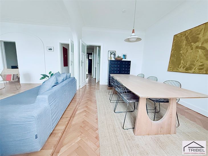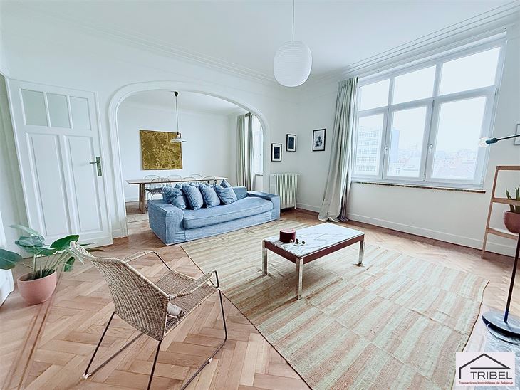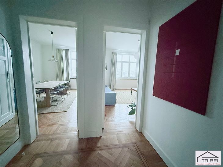BRUXELLES, à proximité immédiate de la Place Stéphanie (Louise) et du Palais de Justice, non loin du Sablon et de nombreux commerces, restaurants et transports en commun, magnifique appartement meublé de +/- 115m², comprenant: hall d'entrée, grand et lumineux living, cuisine full équipée, 2 chambres, salle de douche, wc séparé avec lave-mains, buanderie équipée, cave. Double vitrage et parquet dans tout l'appartement. Libre immédiatement !!! BAIL D'UN AN MINIMUM !!! Pour conditions et visites: 02 344 88 84 / rent@tribel-immo.be / www.tribel-immo.be (PEB: E-)