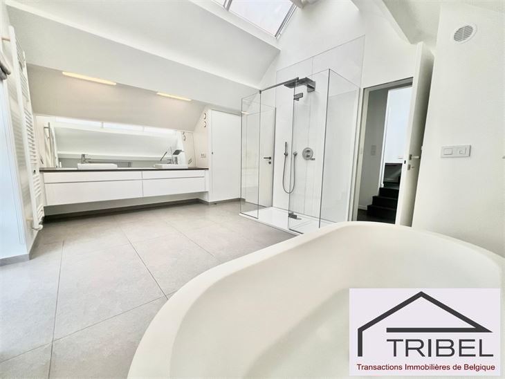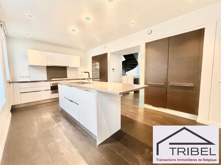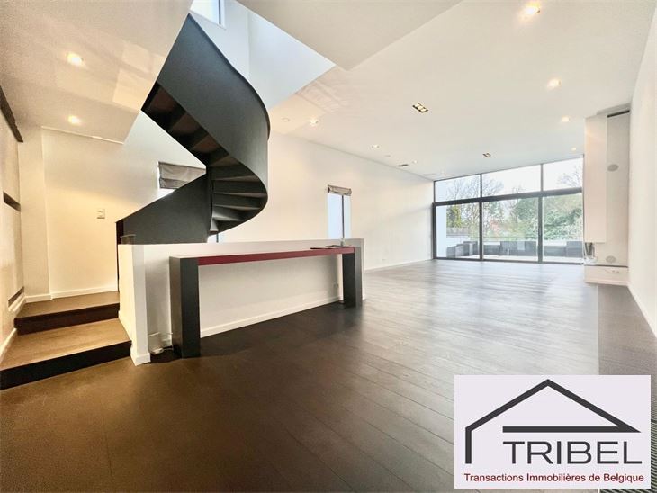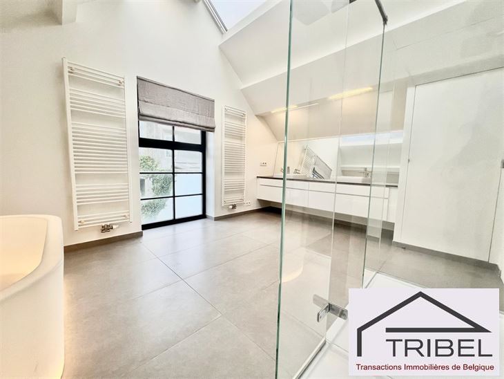 UCCLE (Xavier De Bue), située à l'arrière d'une porte cochère, à l'abri des regards, sublime maison aménagée dans un esprit loft de +/- 314m² + 3 terrasses, comprenant: hall d'entrée, vestiaire, wc invités, grand salon avec feu ouvert (cassette pour foyer), salle à manger, cuisine super équipée avec ilot central, 3 chambres dont une avec air conditionné, 3 salles de bain (avec wc), 1 bureau, buanderie et cave. Double vitrage, emplacement de parking intérieur. Libre à l'acte. Pour conditions et visites: 02 344 88 84 / sales@tribel-immo.be / www.tribel-immo.be (PEB: C)