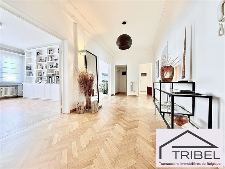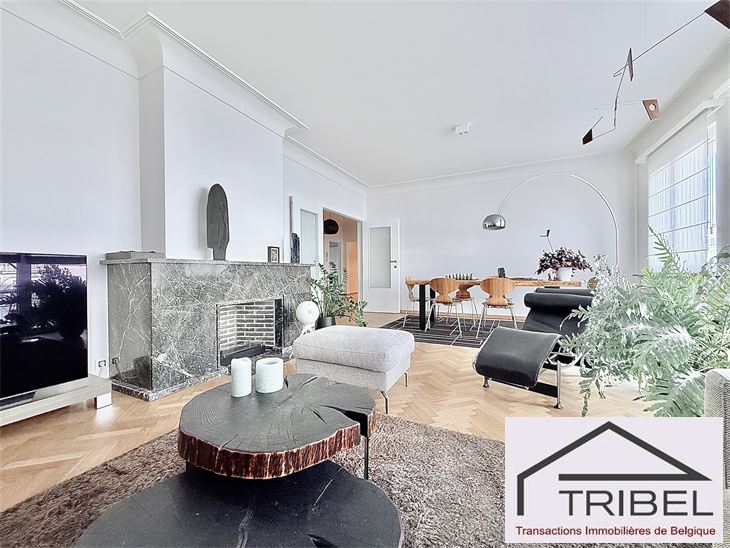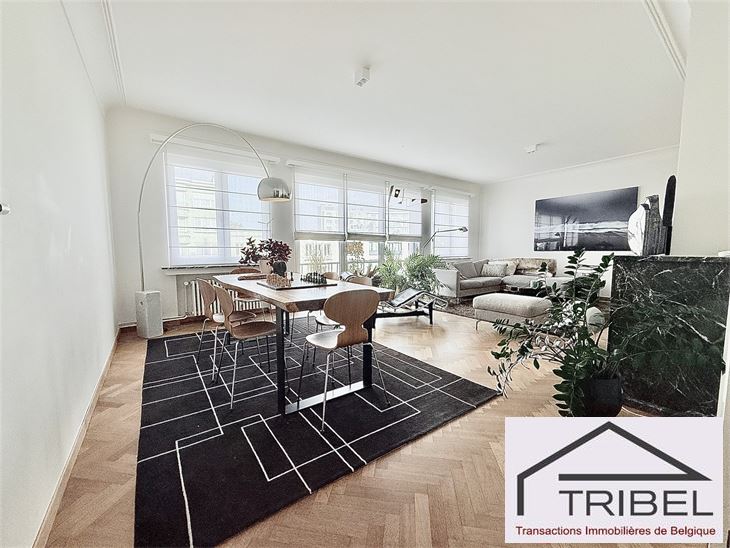 IXELLES (proximité ULB/Fr Roosevelt), à deux pas des restaurants, des commerces et des transports en communs, au 2ème étage d'un immeuble de standing, magnifique appartement aux allures ART DECO de 170m² selon PEB, comprenant: vaste hall d'entrée, wc séparé + vestiaire, living lumineux en parquet, cuisine entièrement équipée + balcon, 4 chambres, sdb, wc et cave. Double vitrage et porte de sécurité. Garage + parking extérieur (en supplément pour 55.000). Libre à l'acte. Pour conditions et visites: 02 344 88 84 / sales@tribel-immo.be / www.tribel-immo.be (PEB: C+). - Le toit de limmeuble a été isolé en 2023 et une ferme solaire installée en 2024 avec un partage dénergie dans limmeuble. - Le garage dispose dune alimentation pour borne de recharge. - Chaudière à condensation pour limmeuble - Adoucisseur eau chaude. - Installation électrique conforme. - PEB C+ avant réalisation des travaux susmentionnés (2023 et 2024).
