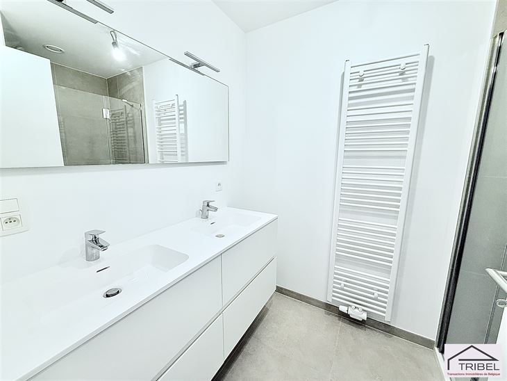 1ère occupation !!! UCCLE (Fort Jaco), dans une nouvelle construction, à proximité immédiate des commerces, des restaurants, du David Lloyd et de la forêt de Soignes, sublime appartement de 83m² + deux terrasses, comprenant: hall d'entrée, vestiaire, wc séparé, living, cuisine ouverte full équipée, 1 chambre, salle de douche, espace buanderie, cave privative et local vélos. Parking auto en option (120€/mois/htva). L'appartement est équipé de luminaires dans certaines pièces (sanitaires et halls), d'une VMC et d'une chaudière individuelle. Libre directement. BAIL SOCIETE OK! Pour conditions et visites: 02 344 88 84 / rent@tribel-immo.be / www.tribel-immo.be (PEB: A)