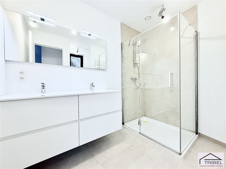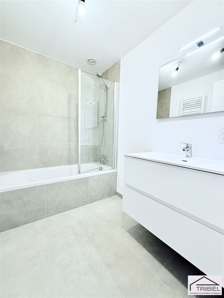 1ère occupation !!! UCCLE (Fort Jaco), dans une nouvelle construction, à proximité immédiate des commerces, des restaurants, du David Lloyd et de la forêt de Soignes, sublime appartement de 107m², comprenant: hall d'entrée, vestiaire, wc séparé, living + balcon orienté sud de 3,9m², cuisine ouverte full équipée, 2 chambres dont une avec balcon orienté nord, salle de bain, salle de douche + wc, espace buanderie, cave privative et local vélos. Parking auto en option (120€/mois/htva). L'appartement est équipé de luminaires dans certaines pièces (sanitaires et halls), d'une VMC et d'une chaudière individuelle. Libre directement. BAIL SOCIETE OK! Pour conditions et visites: 02 344 88 84 / rent@tribel-immo.be / www.tribel-immo.be (PEB: A)