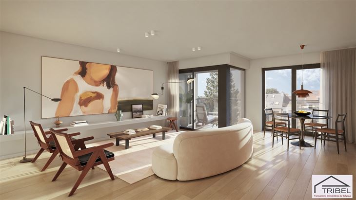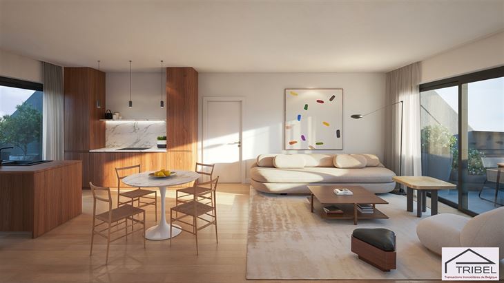 UCCLE, à deux pas du Bois de la Cambre et du quartier Montjoie, superbe appartement neuf de +/- 66,43m2 + terrasse de 4m², comprenant: hall d'entrée, wc séparé, living en parquet, cuisine ouverte super équipée, hall de nuit, 1 chambre en parquet, SDD, buanderie. L'appartement bénéficie des technologies et standards des plus exigeants: isolation thermique et acoustique, PEB A, chauffage par pompe à chaleur individuelle et ventilation double flux. Possibilité d’acquérir un emplacement parking optionnel (45.000€ hors frais) ainsi qu'une cave obligatoire (6.000€ hors frais). Ce projet attractif répondra parfaitement aux attentes des occupants comme des investisseurs. Livraison prévue fin 2027. Garantie d'achèvement (Loi Breyne). Vente sous régime de la TVA (possibilité TVA 6% sous conditions) et des droits d'enregistrement. Dossier complet sur demande: 02 344 88 84 / sales@tribel-immo.be / www.tribel-immo.be