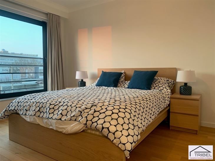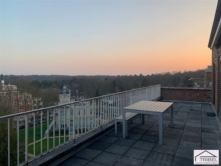 IXELLES (proche du bois de la Cambre et du quartier des ambassades), dans une rue perpendiculaire à l'avenue Franklin Roosevelt, dans un immeuble de standing, sublime PENTHOUSE de +/- 130m² + deux terrasses (offre de magnifiques vues), comprenant: hall d'entrée, vestiaire, wc séparé, beau séjour/salle à manger avec feu ouvert décoratif, cuisine full équipée, buanderie, hall de nuit, 2 chambres en parquet, salle de bains, salle de douche, cave, double vitrage, porte blindée et système d'alarme. Garage box obligatoire (150€/mois). Libre le 1er mai 2026. Pour conditions et visites: 02 344 88 84 / rent@tribel-immo.be / www.tribel-immo.be (PEB: G)