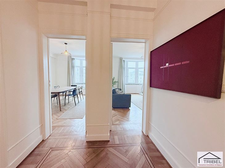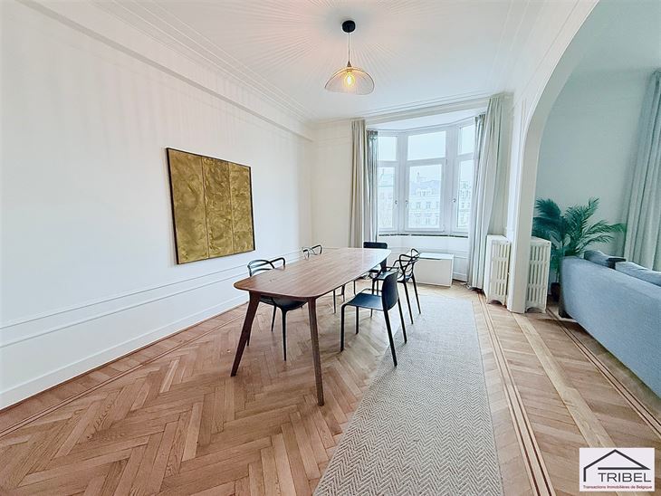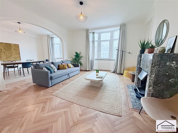 BRUXELLES limite IXELLES, à proximité immédiate de la Place Stéphanie (Louise) et du Palais de Justice, non loin du Sablon et de nombreux commerces, restaurants et transports en commun, magnifique appartement meublé de +/- 130m², comprenant: hall d'entrée, grand et lumineux living, cuisine full équipée, 2 chambres, salle de bains, wc séparé avec lave-mains, buanderie équipée, cave. Double vitrage et parquet dans tout l'appartement. Libre immédiatement !!! BAIL D'UN AN MINIMUM !!! Pour conditions et visites: 02 344 88 84 / rent@tribel-immo.be / www.tribel-immo.be (PEB: D)