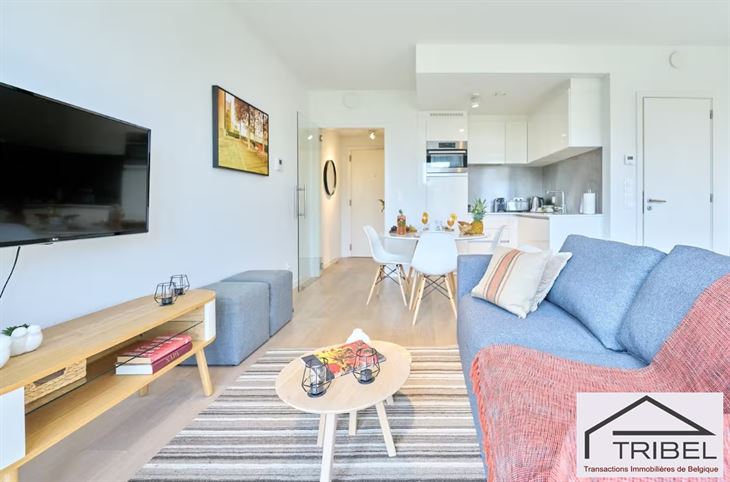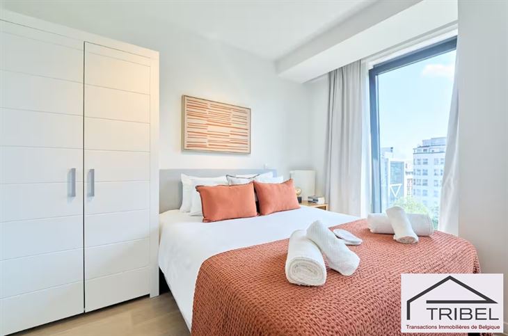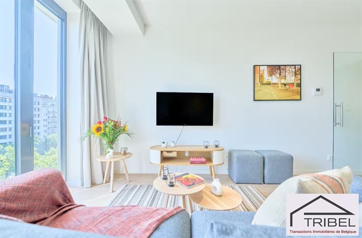 BRUXELLES, à proximité immédiate de la Place Stéphanie (Louise) et du Palais de Justice, non loin du Sablon et de nombreux commerces, restaurants et transports en commun, superbe studio meublé de +/- 45m2 au 5°étage, comprenant: hall d'entrée, pièce de vie avec coin à dormir, cuisine ouverte hyper équipée, salle de douches, wc séparé avec lave-mains, buanderie, cave. Solarium sur le toit de l'immeuble. Libre immédiatement. Pour conditions et visites: 02 344 88 84 / rent@tribel-immo.be / www.tribel-immo.be (PEB: B-)