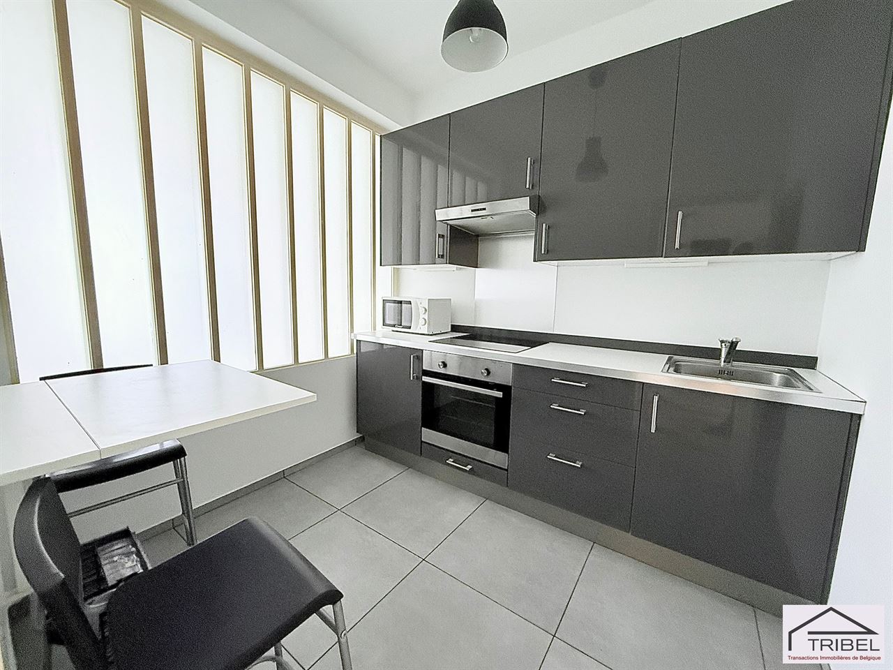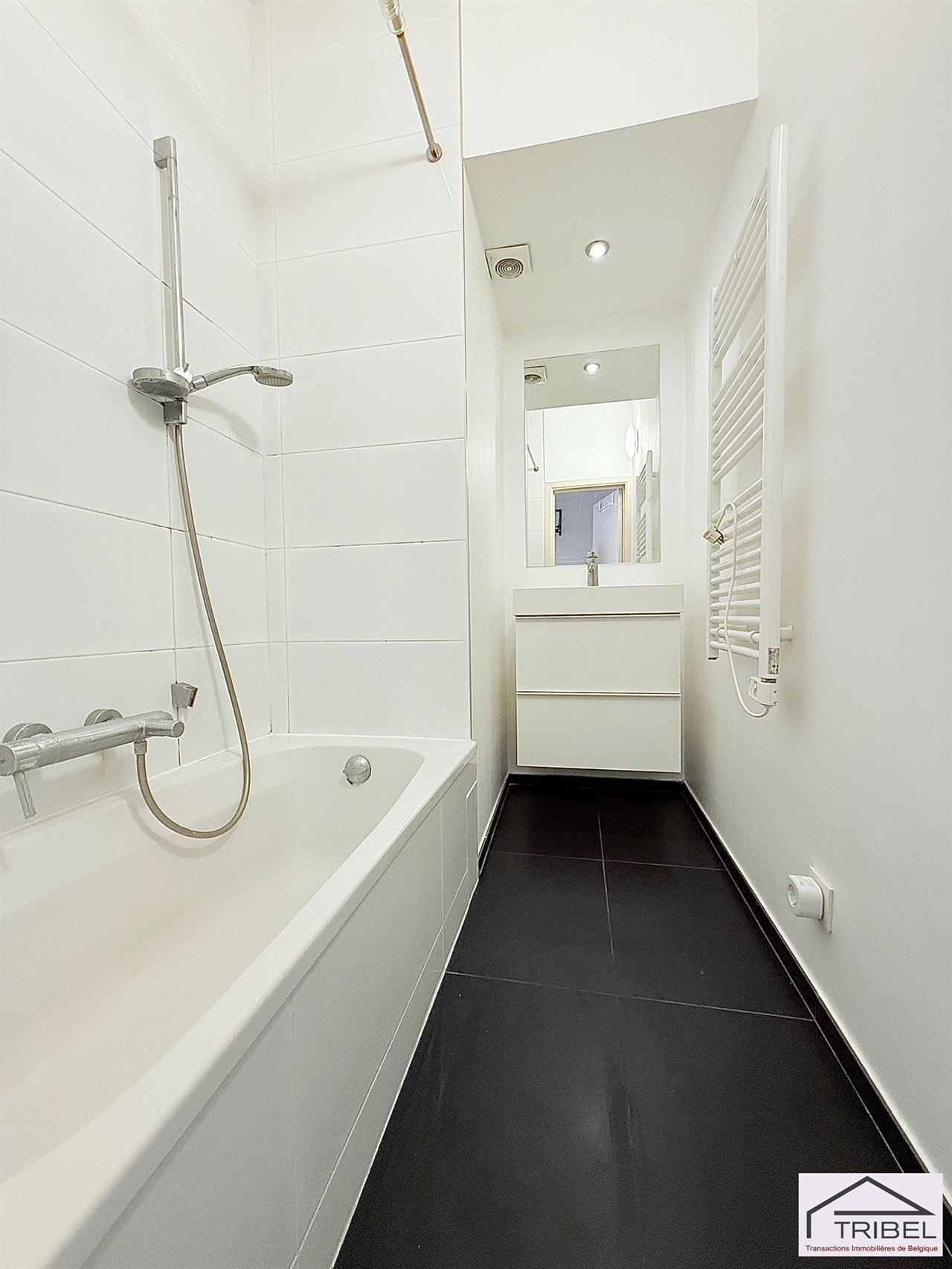 TOP INVESTISSEMENT!!! Si 1er achat, pas de droits d'enregistrement sur les premiers 200.000€ soit une économie de 25.000€!!! SAINT-GILLES limite IXELLES (à proximité de la place du Châtelain), dans un petit immeuble, sublime studio lumineux de 49m² (selon PEB), comprenant: hall d'entrée, living en parquet, cuisine séparée full équipée, 1 chambre, salle de bain, wc séparé, cave et local vélos. Libre à l'acte. Pour conditions et visites: 02 344 88 84 / sales@tribel-immo.be / www.tribel-immo.be PEB: G